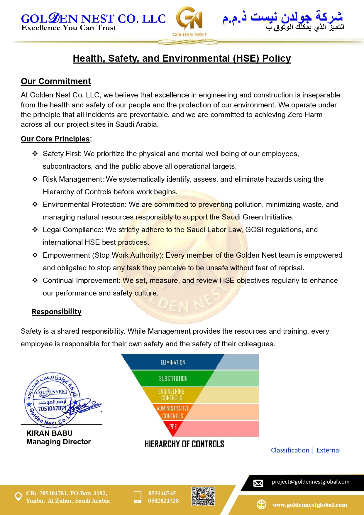“Our success is driven by a team of highly qualified and experienced professionals who are dedicated to delivering excellence in every project. From skilled engineers to technical experts, each member of the Golden Nest team brings specialized knowledge in Industrial Civil, Mechanical, and Electrical works. Our management ensures that every operation adheres to the highest safety and quality standards (ISO 9001:2015).”